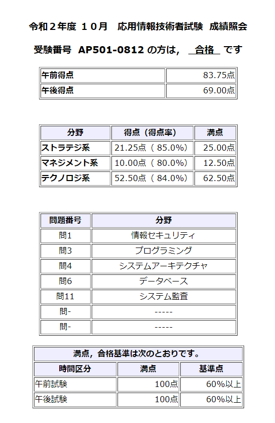 応用情報技術者1発合格しました!